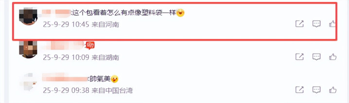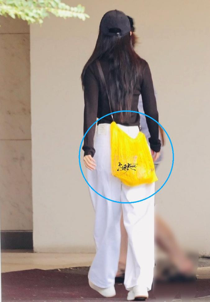 换成是别人,可能都会看成像背了个塑料袋一样,但它实际上是一个网兜材质的购物包,能透出光感,可能和包里的东西有关。